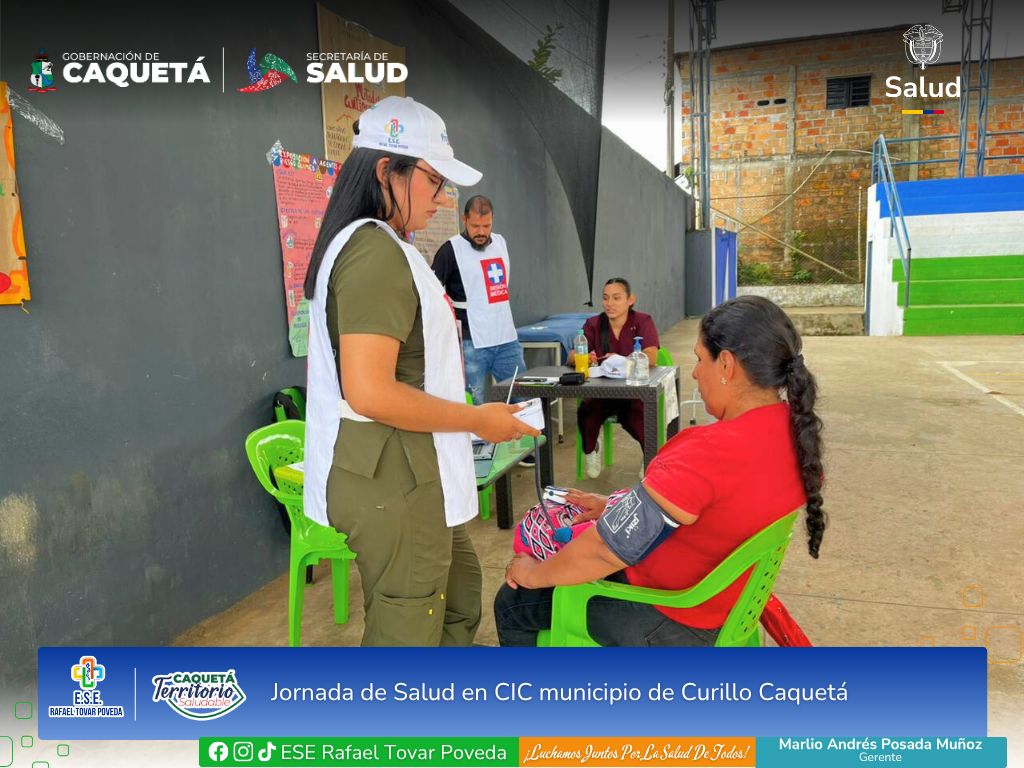 En el municipio de Curillo, nuestro Equipo APS de la E.S.E. Rafael Tovar Poveda llevó a cabo una jornada de salud en el CIC Municipal, acercando atención, orientación y acompañamiento a la comunidad.